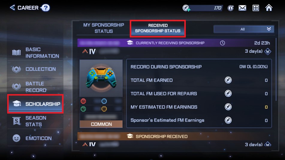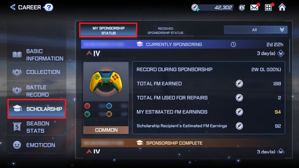 * Detailed information of Controllers that you sponsor can be viewed by going to Player Career from the lobby screen.
